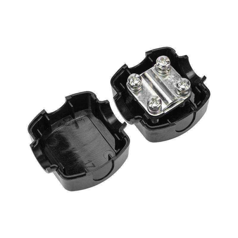Кабельный зажим используется при формировании ответвлений от магистральных кабельных линий с помощью медных или алюминиевых проводов. Это компактное приспособление представляет собой пластиковый короб с двумя входами. Внутри расположен зажим кулачкового типа, затягиваемый болтами. При монтаже достаточно снять изоляцию с магистрального провода и ответвительной жилы без их разрезания, благодаря чему увеличивается надежность электрического контакта. Материал покрытия обеспечивает защиту проводника от преждевременного окисления и способствует увеличению проводимости электрического тока. Корпус прибора выполнен из высококачественного поликарбоната, не поддерживающего горение. Технические характеристики: Материал корпуса: пластик Контакты: оцинкованная сталь Напряжение: 660 В Ток: 39 А Номинальное поперечное сечение проводников: 35 мм2 Номинальная присоединительная способность магистрали: 16...35 мм2 Номинальная присоединительная способность ответвления: 1,5...10 мм2 Температура эксплуатации: - 60...+50 °С Степень защиты: IP20 Класс защиты от поражения эл. током: 0
