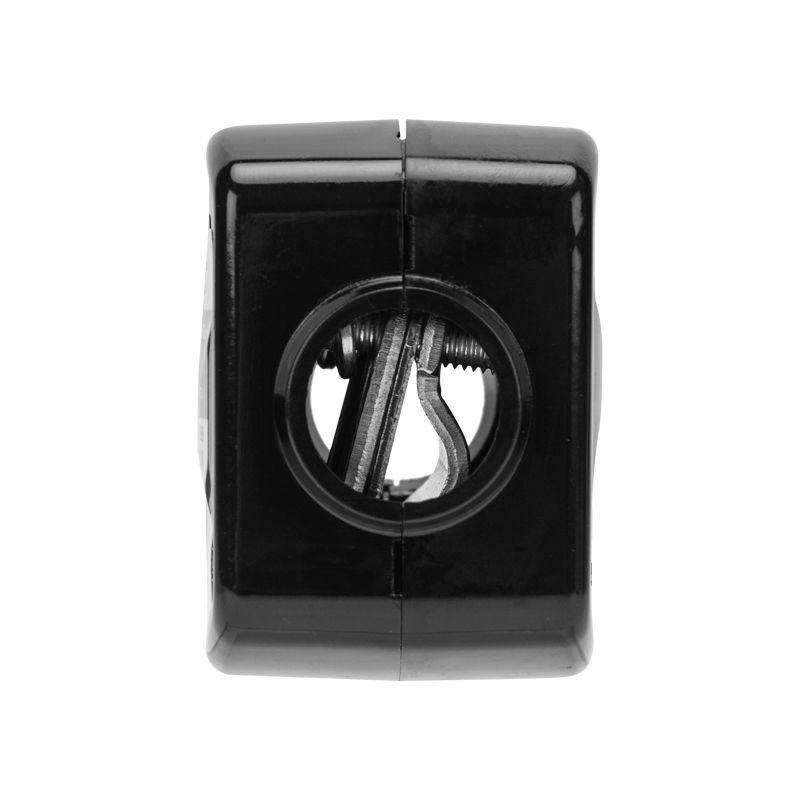 Кабельный зажим используется при формировании ответвлений от магистральных кабельных линий с помощью медных или алюминиевых проводов. Это компактное приспособление представляет собой пластиковый короб с двумя входами. Внутри расположен зажим кулачкового типа, затягиваемый болтами. При монтаже достаточно снять изоляцию с магистрального провода и ответвительной жилы без их разрезания, благодаря чему увеличивается надежность электрического контакта. Материал покрытия обеспечивает защиту проводника от преждевременного окисления и способствует увеличению проводимости электрического тока. Корпус прибора выполнен из высококачественного поликарбоната, не поддерживающего горение. Технические характеристики: Материал корпуса: пластик Контакты: оцинкованная сталь Напряжение: 660 В Ток: 85 А Номинальное поперечное сечение проводников: 70 мм2 Номинальная присоединительная способность магистрали: 50...70 мм2 Номинальная присоединительная способность ответвления: 4...35 мм2 Температура эксплуатации: - 60...+50 °С Степень защиты: IP20 Класс защиты от поражения эл. током: 0