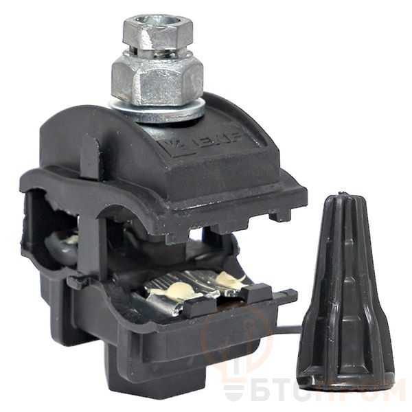 Зажим типа n-640 предназначен для создания герметичного электрического соединения изолированного провода СИП и неизолированного магистрального провода ВЛ. Контакт с изолированным проводом обеспечивается прокалыванием изоляции, с неизолированным проводом – прижимной пластиной. При достижении момента, необходимого для создания надежного электрического контакта проводов, происходит срыв головки болта. Контактные пластины изготовлены из алюминиевого сплава. На прокалывающие элементы нанесена контактная смазка. Болт изолирован от контактных деталей зажима. Зажим устойчив к ультрафиолетовому и солнечному излучению, высоким и низким температурам, коррозии и агрессивным атмосферным воздействиям.