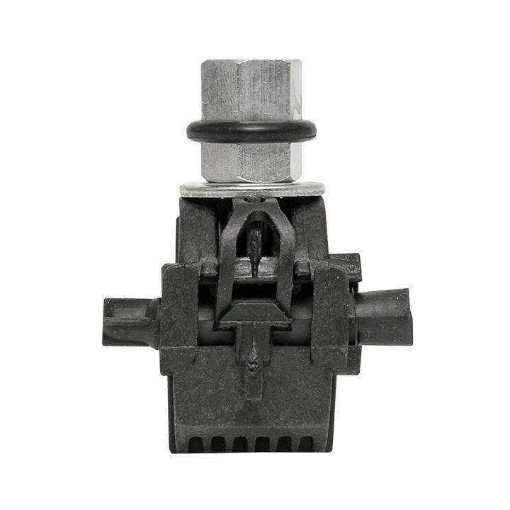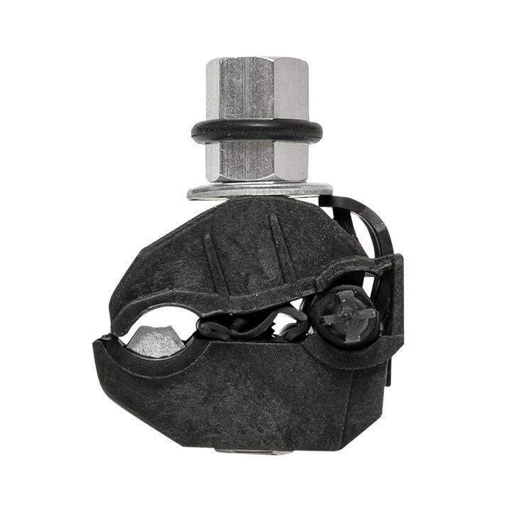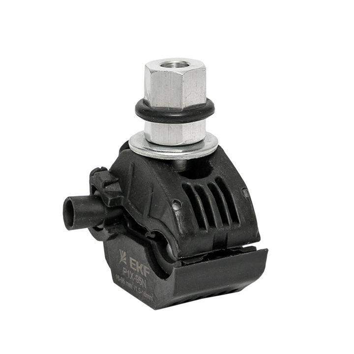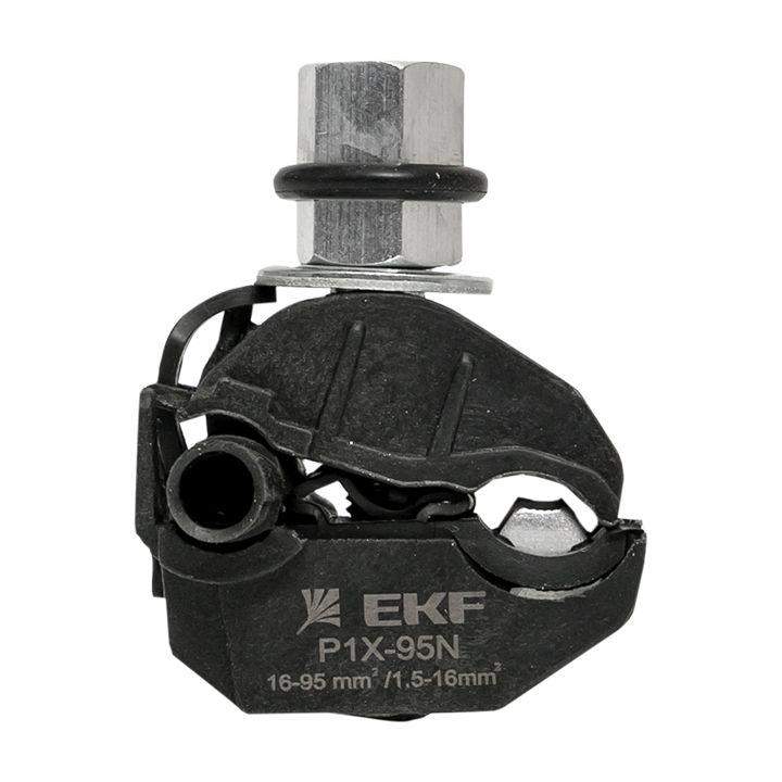 Зажим типа p-1x-95 предназначен для герметичного электрического соединения и ответвления изолированных абонентских проводов, а также проводников освещения от неизолированной магистрали. Контакт с изолированным проводом обеспечивается прокалыванием изоляции, с неизолированным проводом – прижимной пластиной. При достижении момента, необходимого для создания надежного электрического контакта проводов, происходит срыв головки болта. Контактные пластины изготовлены из луженного алюминиевого сплава. На прокалывающие элементы нанесена контактная смазка. Болт изолирован от контактных деталей зажима. Зажим устойчив к ультрафиолетовому и солнечному излучению, высоким и низким температурам, коррозии и агрессивным атмосферным воздействиям.