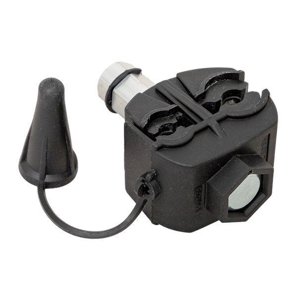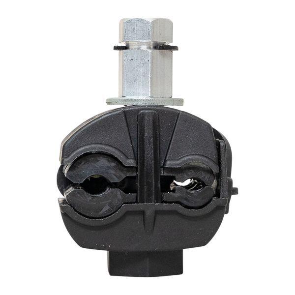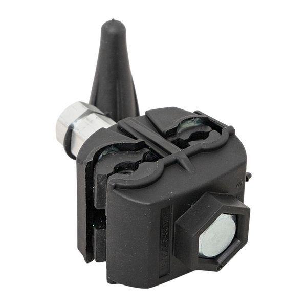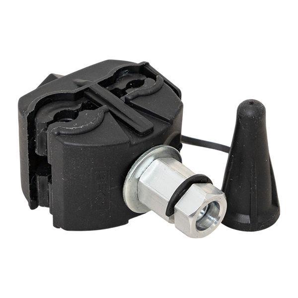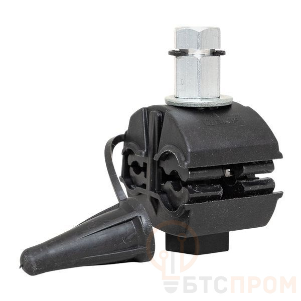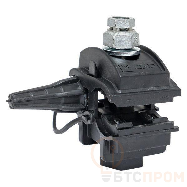 Зажим типа p-2x-95 предназначен для герметичного электрического соединения ответвительной линии СИП с магистралью. Контакт с изолированным проводом обеспечивается прокалыванием изоляции. При достижении момента, необходимого для создания надежного электрического контакта проводов, происходит срыв головки болта. Контактные пластины изготовлены из алюминиевого сплава. На прокалывающие элементы нанесена контактная смазка. Болт изолирован от контактных деталей зажима. Зажим устойчив к ультрафиолетовому и солнечному излучению, высоким и низким температурам, коррозии и агрессивным атмосферным воздействиям.
