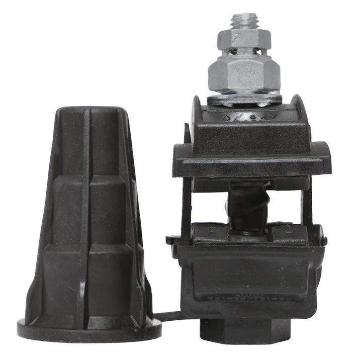 Зажим типа p-5x-95 предназначен для герметичного электрического соединения ответвительной линии СИП с магистралью. Контакт с изолированным проводом обеспечивается прокалыванием изоляции. При достижении момента, необходимого для создания надежного электрического контакта проводов, происходит срыв головки болта. Контактные пластины изготовлены из алюминиевого сплава. На прокалывающие элементы нанесена контактная смазка. Болт изолирован от контактных деталей зажима. Зажим устойчив к ультрафиолетовому и солнечному излучению, высоким и низким температурам, коррозии и агрессивным атмосферным воздействиям.