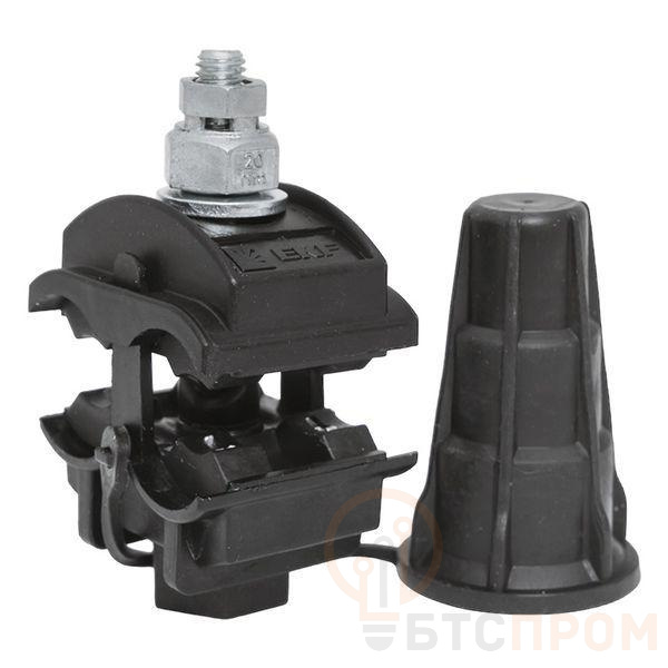 Зажим типа p-5x-95 предназначен для герметичного электрического соединения ответвительной линии СИП с магистралью. Контакт с изолированным проводом обеспечивается прокалыванием изоляции. При достижении момента, необходимого для создания надежного электрического контакта проводов, происходит срыв головки болта. Контактные пластины изготовлены из алюминиевого сплава. На прокалывающие элементы нанесена контактная смазка. Болт изолирован от контактных деталей зажима. Зажим устойчив к ультрафиолетовому и солнечному излучению, высоким и низким температурам, коррозии и агрессивным атмосферным воздействиям.