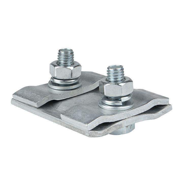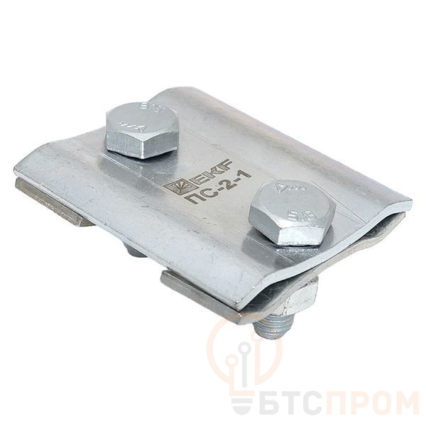 Зажим типа пс-2-1 предназначен для создания электрического соединения стальных проводов, спусков заземления, тросов молниезащиты. Контакт между проводами осуществляется прижимной пластиной. Имеет два болта для увеличения прижимного усилия. Зажим устойчив к ультрафиолетовому и солнечному излучению, высоким и низким температурам, коррозии и агрессивным атмосферным воздействиям.