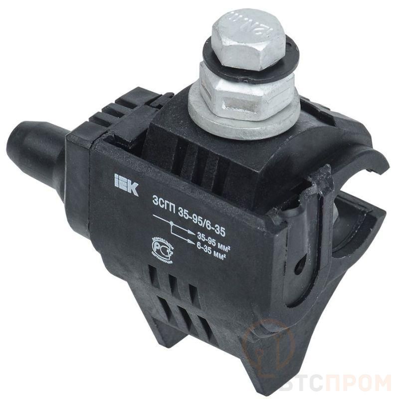 Зажимы серии ЗСГП предназначены для подключения провода СИП к магистральной неизолированной линии. Применимы для алюминиевых и медных проводников напряжением до 1 кВ. При затягивании болтов ножи контактной пластины образуют надежный электрический контакт, прокалывая изоляцию ответвительного проводника, одновременно с этим зажимая поверхность неизолированного магистрального проводника. При достижении определенного усилия, достаточного для создания надежного электрического контакта, происходит срыв верхней головки болта. Для удобства монтажа и транспортировки каждый болт обвальцован для предотвращения возможного разъединения составных частей. Корпус зажима выполнен из механически прочного термопластика, армированного стекловолокном. В случае появления необходимости снятия ответвительного зажима с линии изделие может быть извлечено с помощью соответствующего ключа. Для достижения соответствующих параметров по герметичности необходимо провод ответвляемой линии вставлять в колпачок зажима до упора.