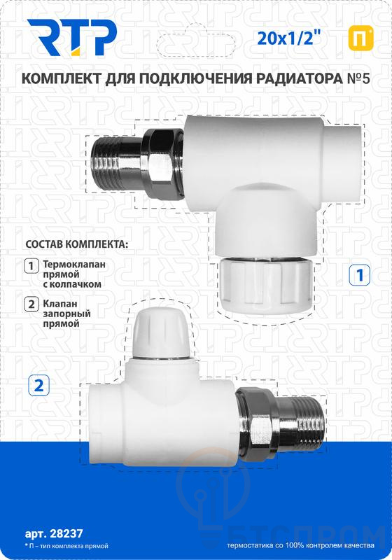 Комплект № 5 (Термостатический клапан прямой с колпачком клапан запорный прямой) PPR 20х1/2 RTP 28237