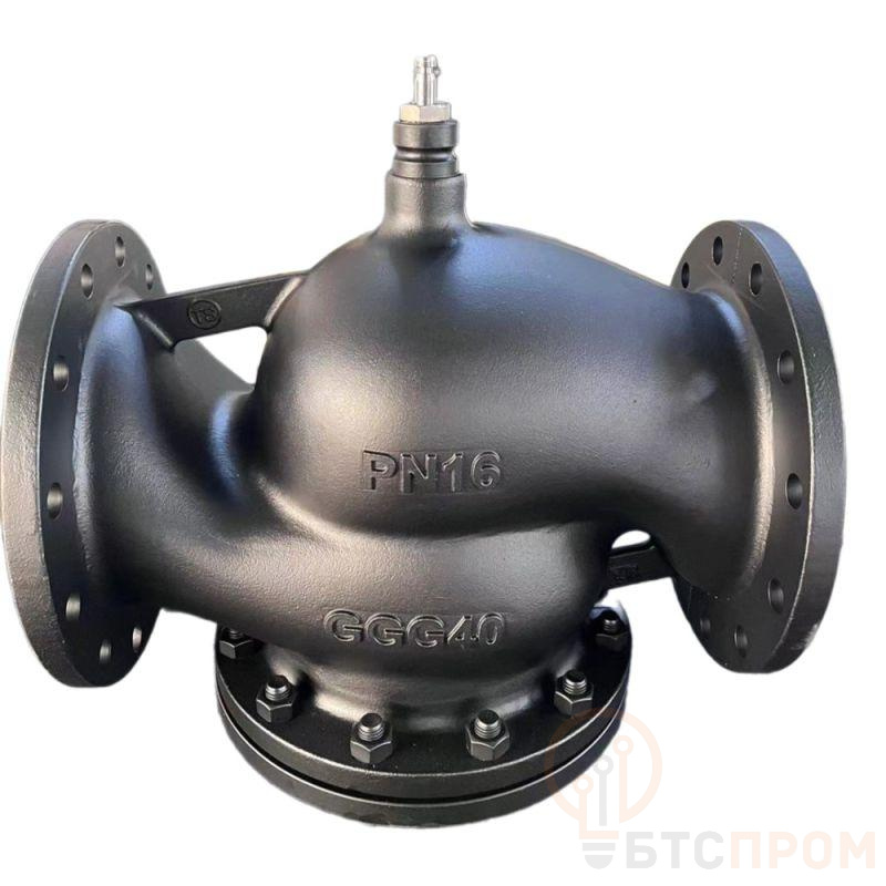 Клапан регулирующий седельный 2-ходовой с фланцевым присоединением, класс давления PN16, диаметр DN200, пропускная способность 450м?/ч, температура теплоносителя -20…+130°С