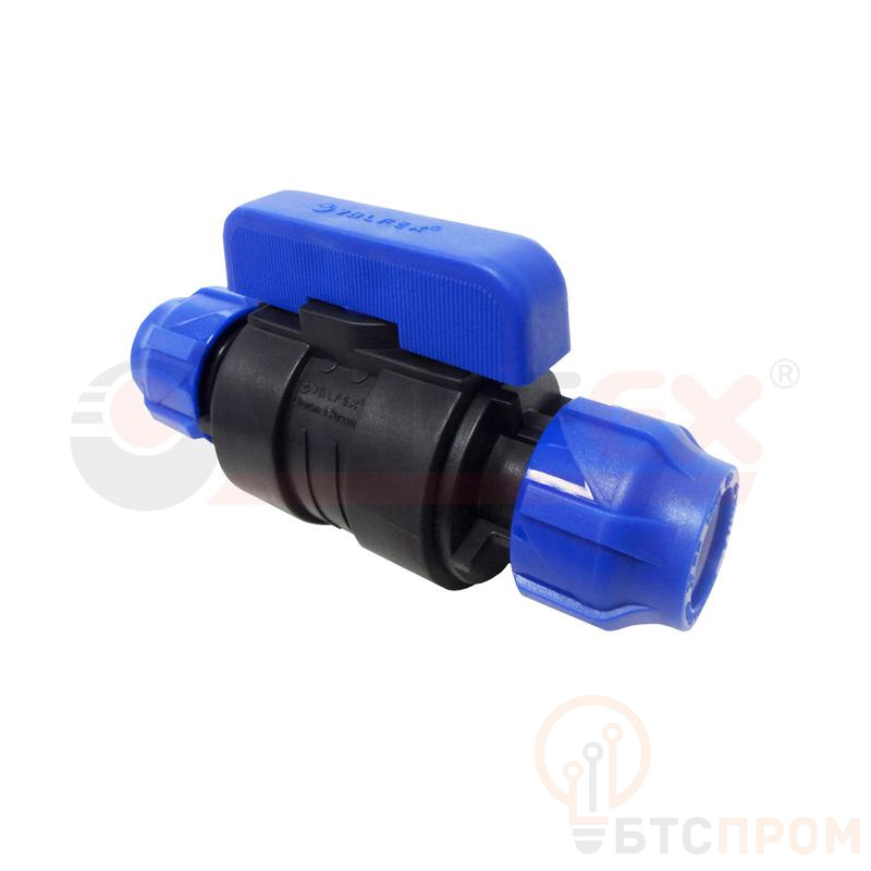 Кран оснащен разборным корпусом и обжимными цанговыми фитингами, что позволяет производить быстрый монтаж и демонтаж без специального инструмента, обеспечивая плотное соединение с металлопластиковыми и полимерными трубами. Управление осуществляется с помощью удобной рукоятки-бабочки.