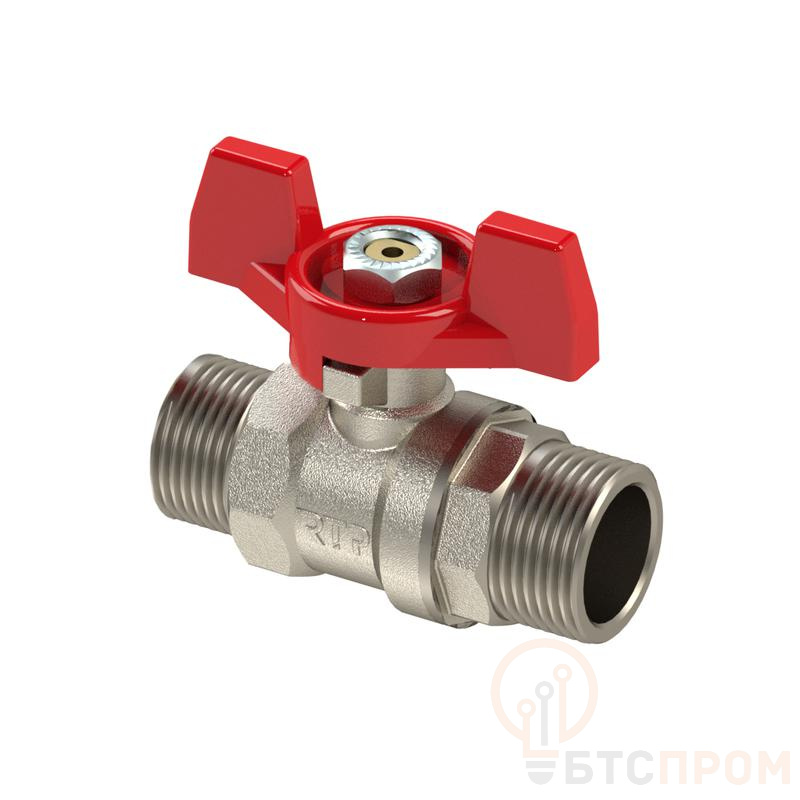 Кран шаровой ручка бабочка латунь наружн. /наружн. резьба 3/4дюйм PN25 никель (инд. упак.) RTP 37847