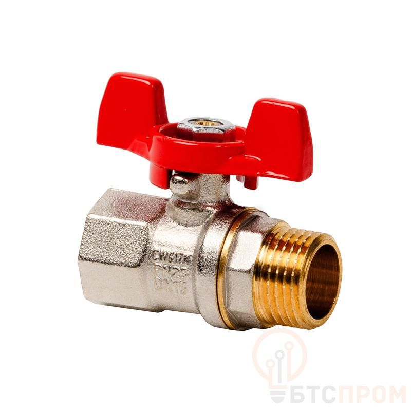 Кран шаровой ручка бабочка латунь внутр./наружн. резьба 3/4дюйм PN25 никель (инд. упак.) RTP 34893 фото в каталоге от BTSprom.by