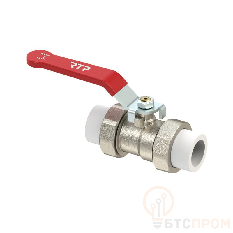 Шаровой кран с рычажным управлением RTP 34666 — это высоконадежная запорная арматура, предназначенная для эффективного перекрытия потока рабочей среды в инженерных системах. Корпус изделия изготовлен из высококачественной латуни с никелевым покрытием, что обеспечивает превосходную коррозионную стойкость и длительный срок службы. Конструкция крана оснащена двумя встроенными переходами на трубу PPR диаметром 40 мм, что позволяет осуществлять быстрый и герметичный монтаж между металлическими и полипропиленовыми участками трубопровода.