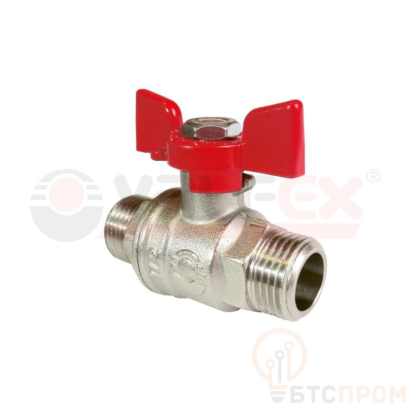 Кран шаровой латунный PREMIUM для ВОДЫ 1/2дюйм НР/НР бабочка НИКЕЛИР-Й 11Б27фт1М (72/18) VALFEX VF.219.NB1.012.PREMIUM