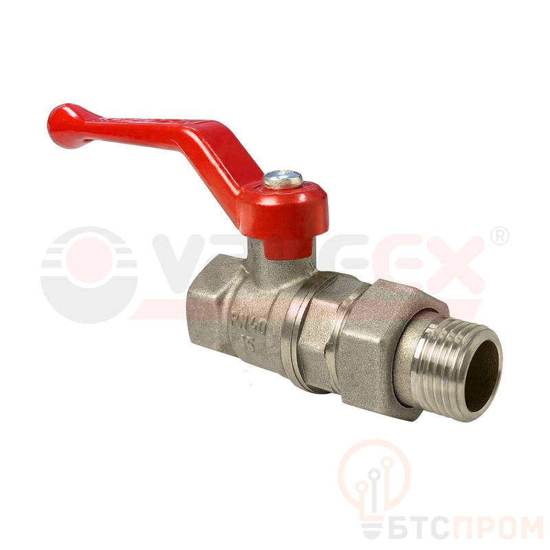 Кран шаровой латунный с американкой никел. покрытие ВН/НР ручка-рычаг 3/4дюйм (40/10) VALFEX VF.225.NR1.034