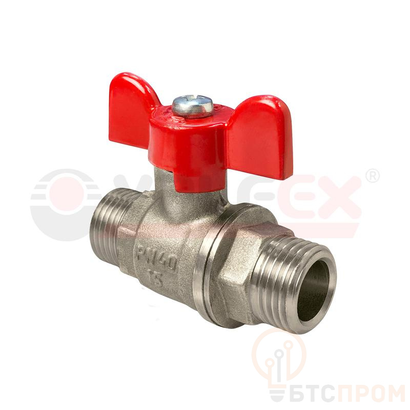 Кран шаровой ручка-бабочка (наружн./наружн.) 1/2дюйм латунь с никелир. покрытием (96/24) VALFEX VF.219.NB1.012