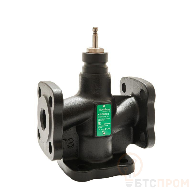 Клапан регулирующий седельный 3-ходовой смесительный с фланцевым присоединением, класс давления PN16, диаметр DN32, пропускная способность 15м?/ч, температура теплоносителя -20…+130°С