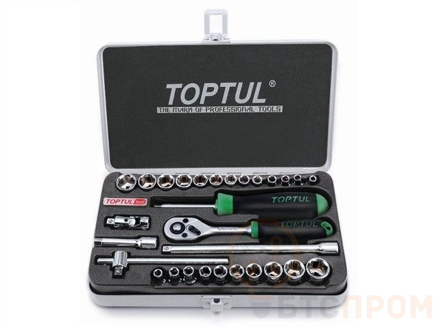Торцевые головки 1/4" 23 предмет(ов) (4, 4.5, 5.5, 6, 7, 8, 9, 10, 11, 12, 13, 14 мм // 3/16", 7/32", 1/4", 9/36", 5/16", 11/32", 3/8", 7/16", 1/2", 9/16")