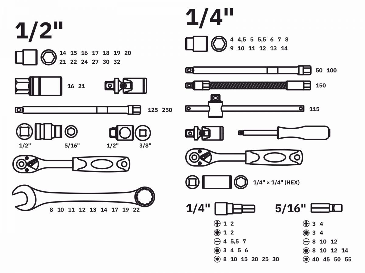 Головка торцевая 1/4: 4, 4.5, 5, 5.5, 6, 7, 8, 9, 10, 11, 12, 13, 14 мм;