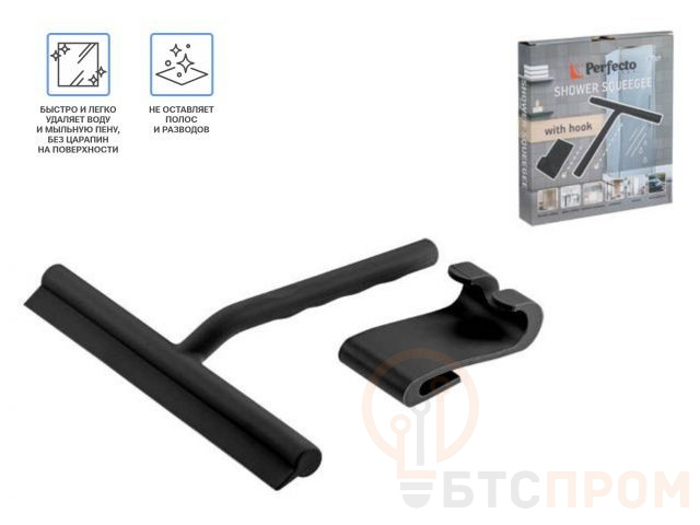 Стеклоочиститель (водосгон) с держателем, черный, PERFECTO LINEA (Идеально для ванной комнаты.) 45-121190