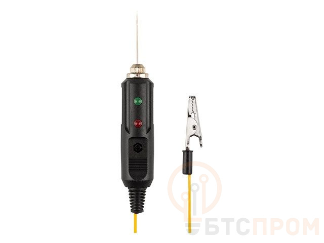 Позволяет определить полярность напряжения (+/-), выявить замыкание и обрыв проводки без необходимости размыкать проводку - за счет возможности ввести тонкую иглу непосредственно через изоляцию в проводку или проверить предохранители, лампочки и диоды. Корпус выполнен из ударопрочного пластика и снабжен проводом с зажимом типа <крокодил>, светодиодным и звуковым индикатором.