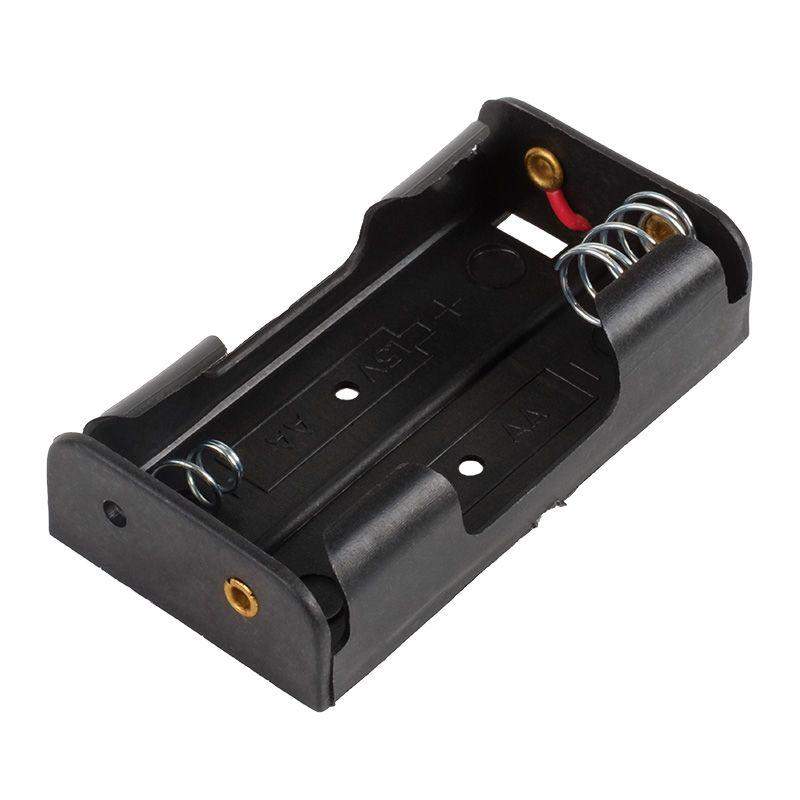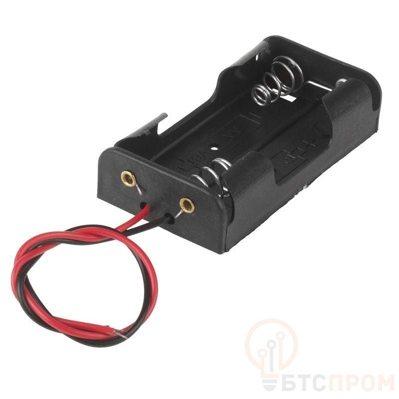 Батарейный отсек (держатель батареек) для двух батарей типоразмера АА с контактными проводами предназначен для подключения питания в различном оборудовании (в том числе в бытовых устройствах, игрушках и радиоуправляемых моделях). В целях ускорения и удобства монтажа держатель выполнен с двумя проводами (красного и черного цвета) длиной по 13 см, т. е. не требует пайки контактов. Окончания проводов подготовлены для дальнейшего монтажа: зачищены и обложены оловом. Суммарное напряжение при использовании 2 батареек на 1.5 В составит 3 В. Технические характеристики: Количество элементов: 2 Тип устанавливаемых элементов: АА «пальчиковая батарейка» Корпус: открытый Материал: АБС пластик Цвет: черный Габаритные размеры: 57х30х13 мм (подробнее см. схему) Контакты: провод красный (+) 130 мм, провод черный (-) 130 мм Сечение провода: 0.13 мм2 (AWG26) Температурный диапазон: -40...+105 °C