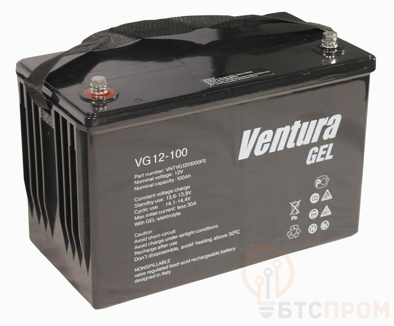 Аккумуляторная батарея VG 12-100 Ventura 12В 100А·ч - надежный источник автономного питания с увеличенным ресурсом службы. Технология AGM (Absorbent Glass Mat) и состояние электролита в связанной форме обеспечивают абсолютную герметичность и безопасную эксплуатацию в любом положении.