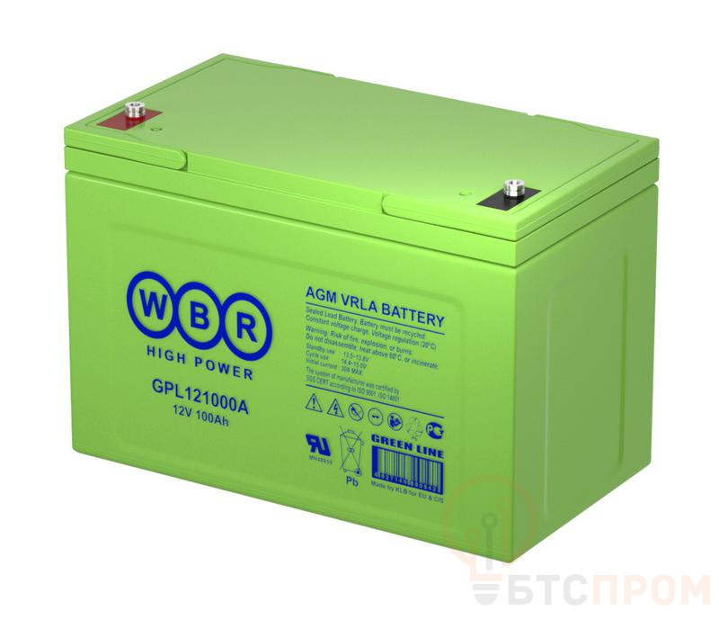 Аккумуляторная батарея WBR GPL121000A – это надежный источник автономного питания с номинальным напряжением 12 В и емкостью 100 А·ч. Данная модель изготовлена по передовой технологии AGM (Absorbent Glass Mat), что обеспечивает ее полную необслуживаемость, высокую устойчивость к вибрациям и возможность установки в любом положении (кроме перевернутого). Благодаря низкому внутреннему сопротивлению, аккумулятор обладает большими токами отдачи и быстрой способностью к перезарядке.