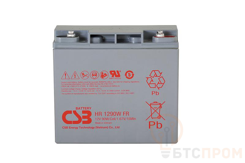 Аккумуляторная батарея CSB HR1290W FR — это надежный источник бесперебойного питания, разработанный с применением технологии AGM (Absorbent Glass Mat). Данная модель обладает номинальным напряжением 12 В и емкостью 22.5 А·ч, что обеспечивает длительную автономную работу подключенного оборудования.