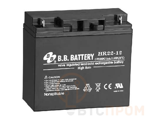 Аккумуляторная батарея B.B. Battery HR 22-12 — это надежный свинцово-кислотный аккумулятор напряжением 12 В и емкостью 22 А·ч, выполненный по технологии AGM (Absorbent Glass Mat). Необслуживаемая конструкция и клапанная регулировка делают его полностью безопасным в эксплуатации. Благодаря герметичному корпусу устройство можно использовать в любом положении без риска утечки электролита.