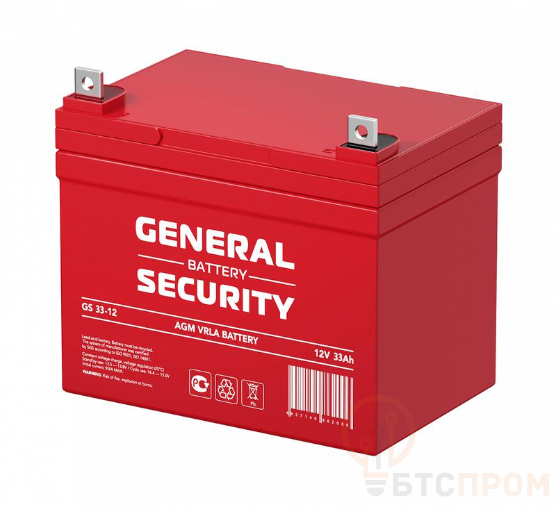 Аккумуляторная батарея General Security GS33-12 — надежный свинцово-кислотный аккумулятор напряжением 12 В и емкостью 33 А·ч. Выполнен по технологии AGM (Absorbent Glass Mat), что обеспечивает его полностью необслуживаемую эксплуатацию и устойчивость к вибрациям. Электролит в нем абсорбирован в стекловолокне, что исключает риск протечек и позволяет устанавливать батарею в любом положении.