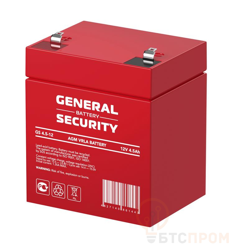 Аккумулятор 12В 4.5А.ч General Security GS4.5-12 фото в каталоге от BTSprom.by