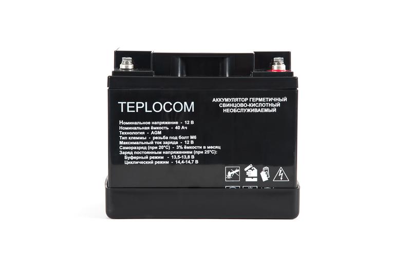 Герметичный свинцово-кислотный необслуживаемый AGM АКБ. 12 В, 40 Ач. Максимальный ток заряда — 12 А. Максимальный ток разряда (в течение 5 с при 25°C) — 400 А. Тип клеммы — резьба под болт М6. Размер корпуса — 198х166х170. Вес — 12,9 кг. Срок службы — 12 лет.