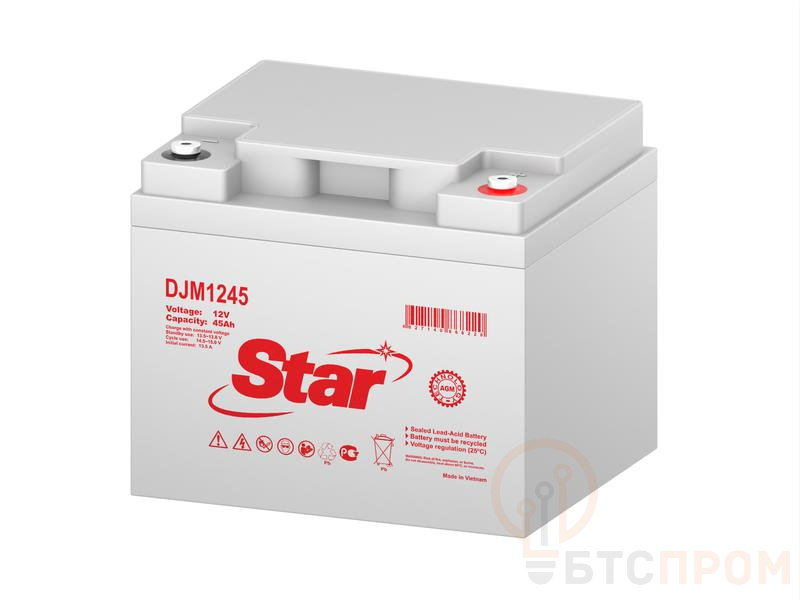 Аккумуляторная батарея Star DJM1245 — это надежный свинцово-кислотный источник питания, предназначенный для широкого спектра применения. Номинальное напряжение составляет 12 В, а емкость — 45 А·ч, что обеспечивает длительную автономную работу оборудования.