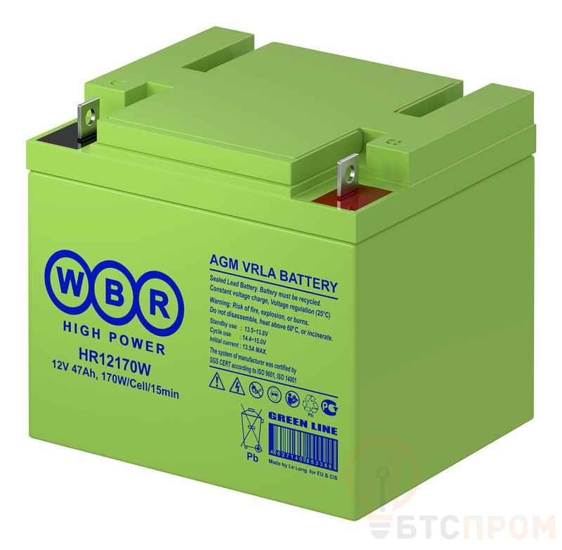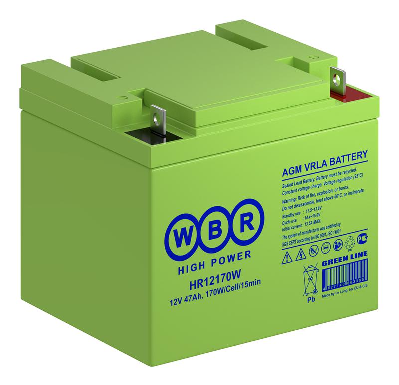 Аккумуляторная батарея WBR HR12170W — это надежный свинцово-кислотный аккумулятор напряжением 12 В и емкостью 45 А·ч. Модель выполнена по современной технологии AGM (Absorbent Glass Mat), что обеспечивает ее полную необслуживаемость, высокую устойчивость к вибрациям и возможность работы в любом положении без риска утечки электролита.