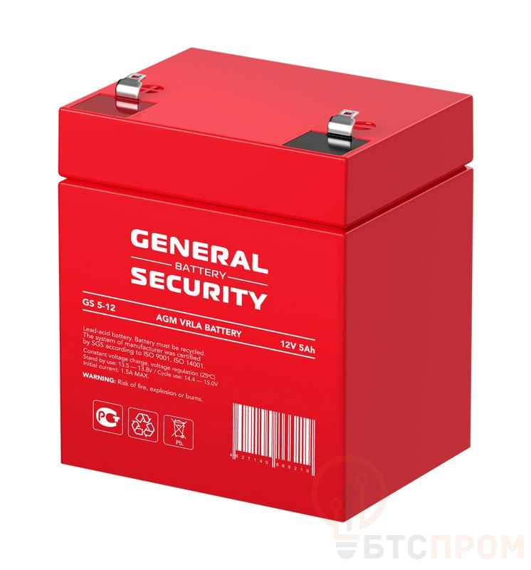 Аккумулятор 12В 5А.ч General Security GS5-12 фото в каталоге от BTSprom.by