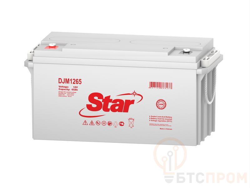 Аккумуляторная батарея Star DJM1265 — надежный источник питания для транспортных средств и оборудования. Номинальное напряжение 12 Вольт и емкость 65 А·ч обеспечивают стабильный пуск двигателя и длительную работу электросистемы.