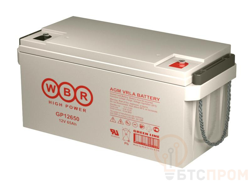 Аккумуляторная батарея WBR GP12650 – это надежный свинцово-кислотный источник питания напряжением 12 В и емкостью 65 Ач. Модель выполнена по необслуживаемой технологии (AGM) с электролитом, абсорбированным в стекловолокне, что обеспечивает безопасную эксплуатацию в любом положении и исключает необходимость доливки воды. Конструкция клапанно-рекомбинационного типа (VRLA) минимизирует газовыделение и потери воды.