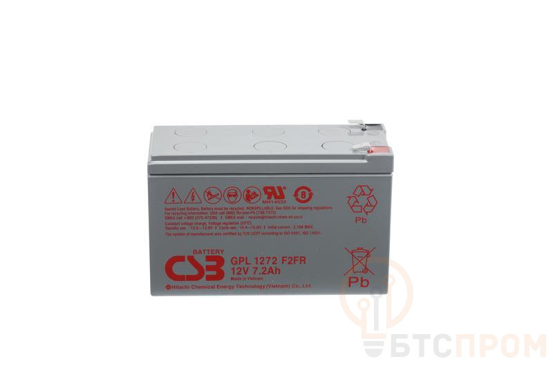 Аккумуляторная батарея CSB GPL1272 F2 FR — надежный источник бесперебойного питания с номинальным напряжением 12В и емкостью 7.2А·ч. Данная модель выполнена в технологии AGM (Absorbent Glass Mat), что обеспечивает полностью необслуживаемую эксплуатацию, высокую устойчивость к вибрациям и возможность работы в любом положении (кроме перевернутого).