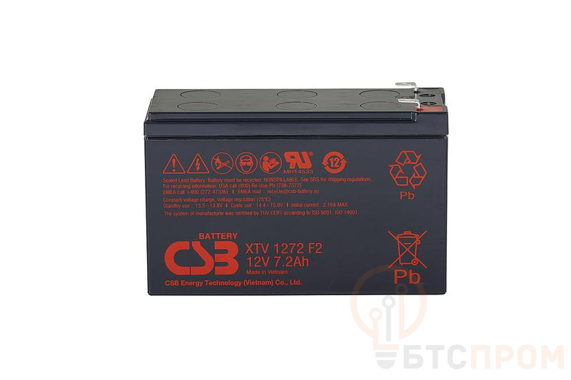 Аккумулятор 12В 7.2А.ч CSB XTV1272 F2 CSB фото в каталоге от BTSprom.by