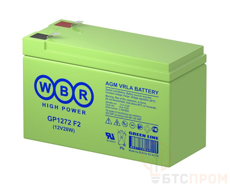 Аккумулятор 12В 7.2А.ч WBR GP1272 F2 (12V28W) WBR фото в каталоге от BTSprom.by