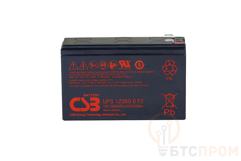 Аккумуляторная батарея CSB UPS123606 F2 — это надежный свинцово-кислотный аккумулятор с клапанной регулировкой (VRLA) необслуживаемого типа. Номинальное напряжение составляет 12 В, а емкость — 7.5 А·ч, что обеспечивает продолжительное резервное питание. Конструкция с технологией AGM и абсорбированным электролитом гарантирует безопасную эксплуатацию без риска утечек, позволяет устанавливать батарею в любом положении и обеспечивает высокие токи разряда.