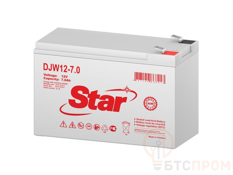 Аккумуляторная батарея Star DJW12-7.0 — это надежный источник бесперебойного питания для широкого спектра устройств. Номинальное напряжение составляет 12 Вольт, а емкость — 7 Ампер-часов, что обеспечивает длительную автономную работу.