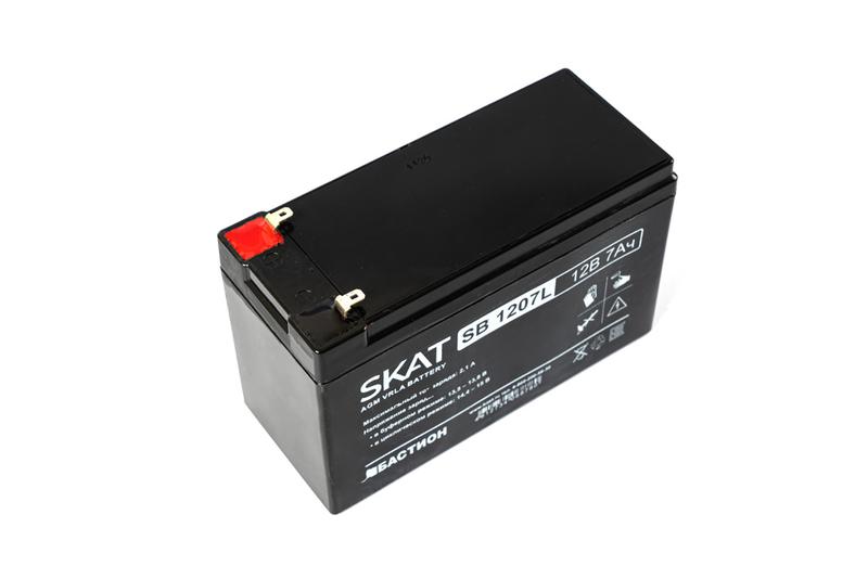 12В, 7Ач, максимальный ток заряда 2,1 А. Тип клеммы — F1 нож. Размер корпуса — 66х151х100. Вес — 1,6 кг. Срок службы — 6 лет. Гарантия - 18 месяцев.