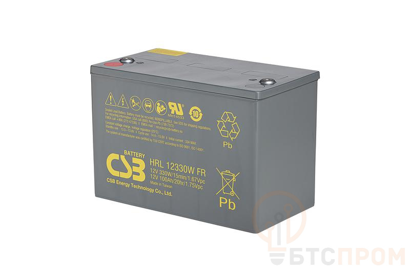 Аккумуляторная батарея CSB HRL12330W FR — это надежный свинцово-кислотный аккумулятор напряжением 12 В и емкостью 83 А·ч. Модель выполнена по передовой технологии AGM (Absorbent Glass Mat) с рекомбинацией газов, что обеспечивает абсолютную герметичность, отсутствие необходимости в обслуживании и безопасную эксплуатацию в любом положении.