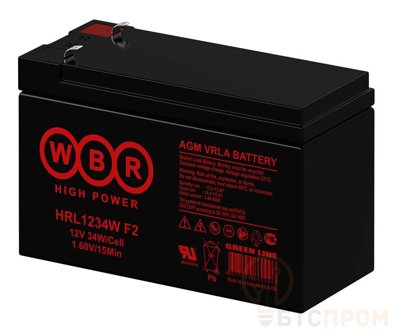 Аккумуляторная батарея WBR HRL1234W F2 — это надежный свинцово-кислотный источник питания, предназначенный для длительной и стабильной работы. Номинальное напряжение устройства составляет 12 В, а емкость — 9 А·ч, что обеспечивает продолжительное энергоснабжение различных приборов и систем.