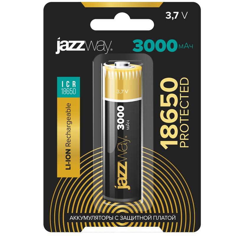 –Аккумулятор 18650 3.7В Li-Ion 3000мА.ч с защитой JazzWay 5012073