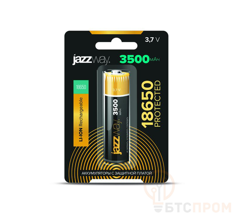 –Аккумулятор 18650 3.7В Li-Ion 3500мА.ч с защитой (блист. 1шт) JazzWay 5059856