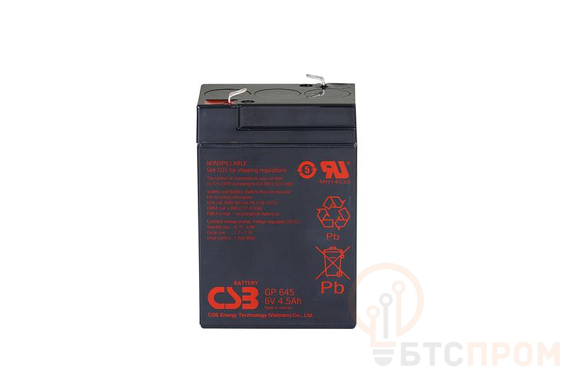Аккумулятор 6В 4.5А.ч CSB GP645 CSB фото в каталоге от BTSprom.by