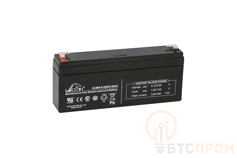 Аккумуляторная батарея LEOCH DJW6-5.0 – это надежный источник резервного питания с номинальным напряжением 6 В и емкостью 5 А·ч. Данная модель изготовлена по технологии AGM (Absorbent Glass Mat), что обеспечивает ее полную герметичность, необслуживаемость и безопасную эксплуатацию в любом положении. Электролит абсорбирован в стекловолокне, что исключает риск протечек.