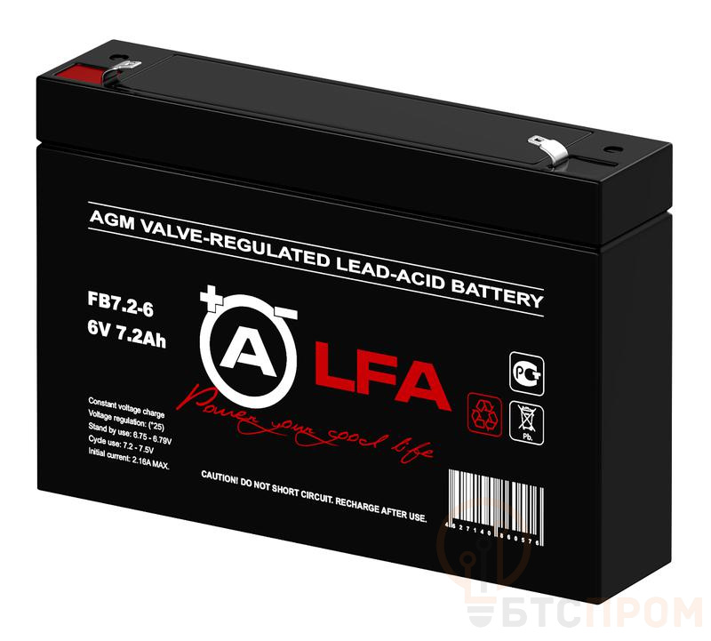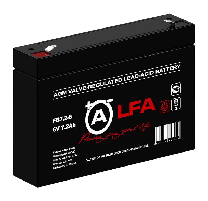 Аккумуляторная батарея LFA FB7.2-6 — это надежный свинцово-кислотный источник питания номинальным напряжением 6 В и емкостью 7.2 А·ч. Модель выполнена по необслуживаемой технологии AGM (Absorbent Glass Mat), что обеспечивает полную герметичность, безопасную эксплуатацию в любом положении и исключает необходимость долива электролита.
