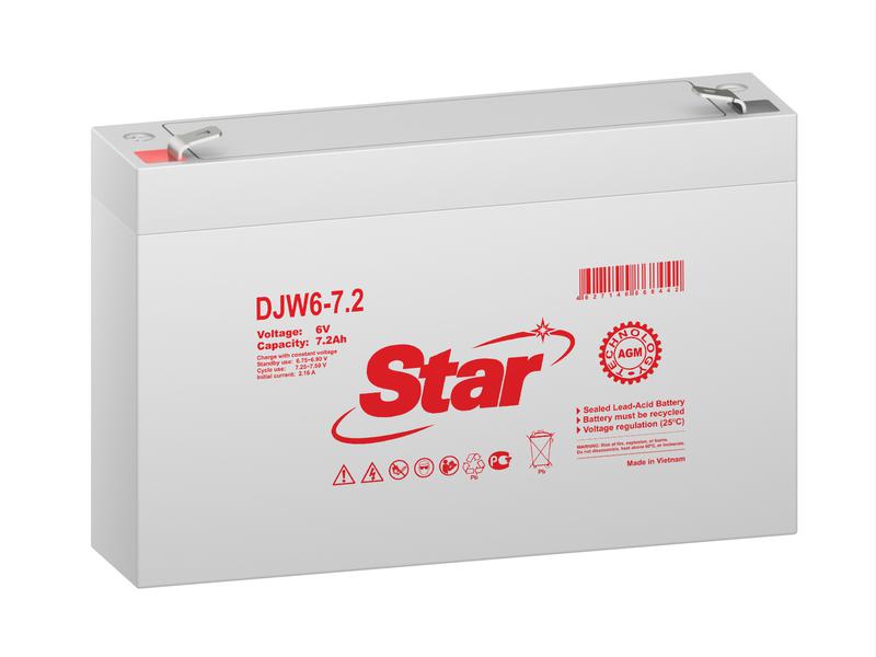 Аккумуляторная батарея Star DJW6-7.2 — это надежный источник энергии с номинальным напряжением 6 В и емкостью 7.2 А·ч. Данная свинцово-кислотная модель, выполненная по технологии AGM (Absorbent Glass Mat), является необслуживаемой и полностью герметичной, что исключает риск утечки электролита и позволяет безопасно эксплуатировать устройство в любом положении.